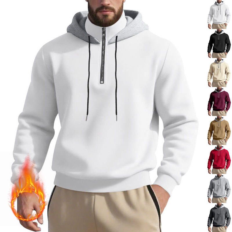 Maglione invernale pesante da uomo con cappuccio, collo alto, casual, sportivo, a maniche lunghe, stile transfrontaliero