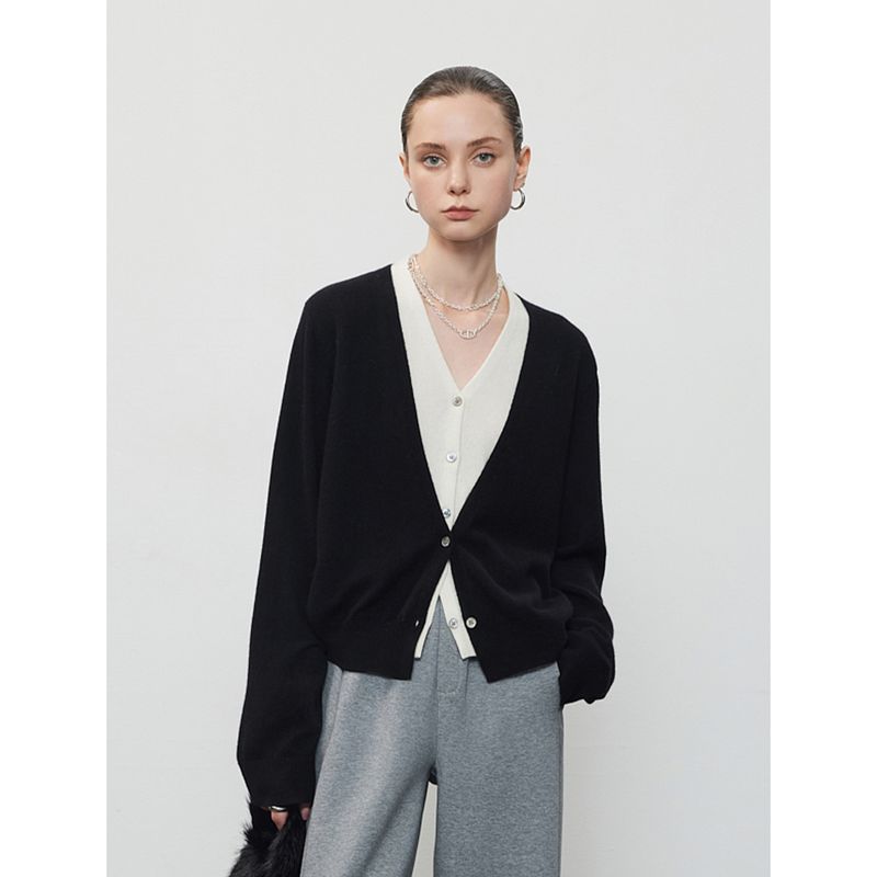 Rongtai Cashmere Wool Layered Fake Two-Piece Color-Block Knitted Sweater for Women 2025 Autumn Winter New V-Neck Cardigan Top