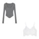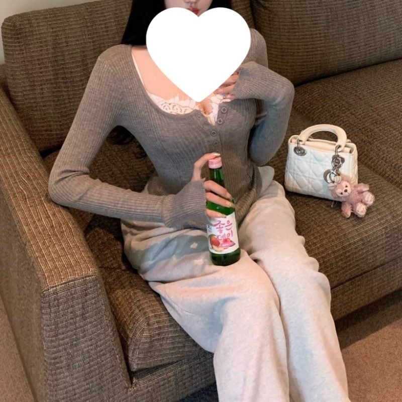 Fabric Name:Cotton 1,Main fabric composition:Cotton 1,Main fabric material composition 2:Cotton,Pattern:other,Design 1:other,Sleeve Length:Long Sleeve,Craftsmanship:Mercerized,Item Number:yes 1,Brand:other,Design:A-line shape,Collar Style:Round Neck,Sleeve Style:Regular Sleeve,Trendy Elements:Threaded,Year/Season of Release:Autumn 2024,Color:Gray long sleeve + lace camisole two-piece set, gray long sleeve,Size:S Recommendation: 50kg days, M Recommendation: 50-57.5kg days, L Recommendation: 57.5-65kg days,Style Type:Elegant Commuter,Main fabric ingredient content:95% and above,Style:Urban Style,Cross-border Style Type:Comfortable and casual,Is it cross-border sourcing?:yes,Product Category:T-shirt,Main Downstream Sales Regions 1:other,Main downstream sales regions 2:other