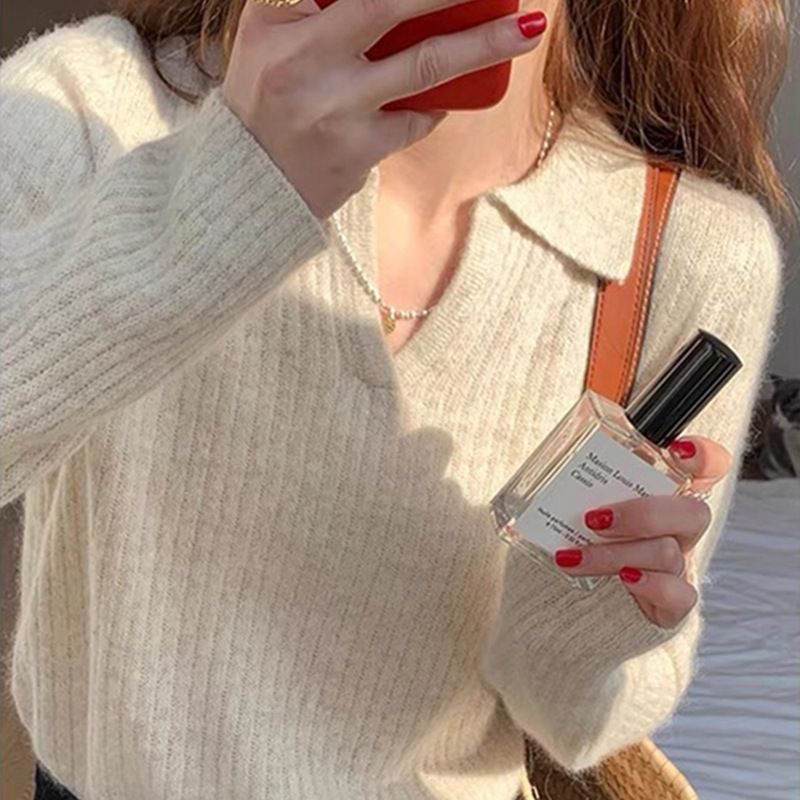 Maglione lavorato a maglia con colletto per donna, autunno inverno, design piccolo, maglione morbido e accogliente, base unica con colletto rovesciato
