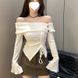 Item Number:Today,Brand:other 1,Fabric Name:Acrylic Fiber,Main fabric composition:Other,Main fabric material composition 2:Other,Pattern:3D effect,Thickness:Average,Design 1:Flat surface,Combination Form:Single item,Design:Irregular Shape,Collar Style:Off-shoulder Neckline,Sleeve Length:Long Sleeve,Sleeve Style:Flutter Sleeves,Trendy Elements:Strap,Craftsmanship:Collage/Assembly,Year/Season of Release:Spring 2025,Color:Black top in stock for immediate dispatch, white top in stock for immediate dispatch, khaki top in stock for immediate dispatch,Size:S recommended for around 47.5kg cm, M recommended for around 52.5kg cm, L recommended for around 57.5kg cm, XL recommended for around 62.5kg cm, 2XL recommended for around 67.5kg cm,Style Type:Elegant Commuter,Wearing style:Pullover,Main fabric ingredient content:Below 30%,Front placket:Pullover,Style:Urban Style,Suitable age group:adult,Applicable Gender:Female,Is it cross-border sourcing?:No,Product Category:Sweater, Knitwear