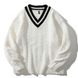 Maglione lavorato a maglia con scollo a V, stile college, per l'autunno, per giovani studenti, uomo