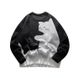 Maglione lavorato a maglia con stampa di gatti - Pullover oversize con scollo rotondo, comodo e alla moda per l'autunno/inverno_voghion.com