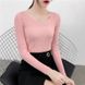 Maglione lavorato a maglia da donna con scollo a V, vestibilità attillata, manica lunga ed elasticizzato, per autunno inverno