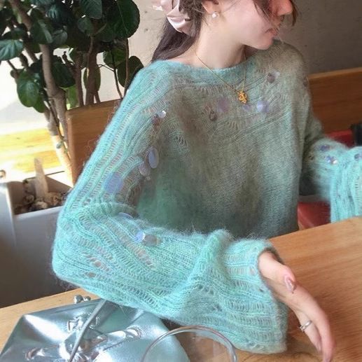 Maglione lavorato a maglia in lana di alpaca per donna 2025, stile atmosfera autunnale, top traforato