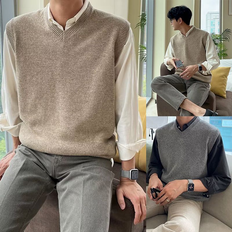 Sleeveless Vest Solid Color Knitted Sweater Men's Vest V-Neck Layering Base Shirt Trendy