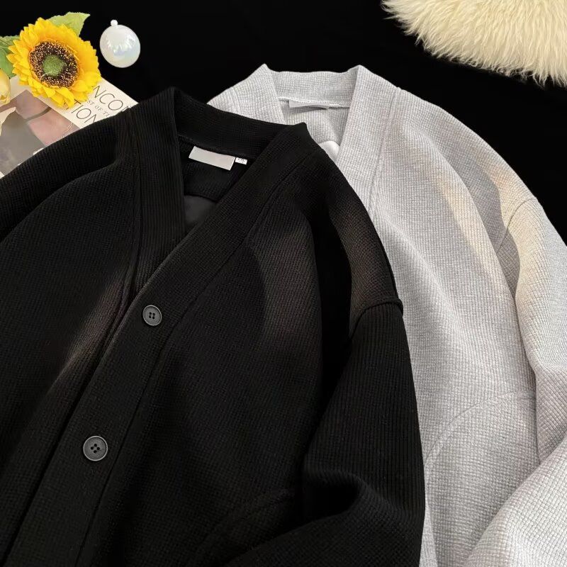 Autumn Winter New American Style Knitted Sweater Men's Loose V-Neck Cardigan Sweatshirt Trendy Casual Jacket Men