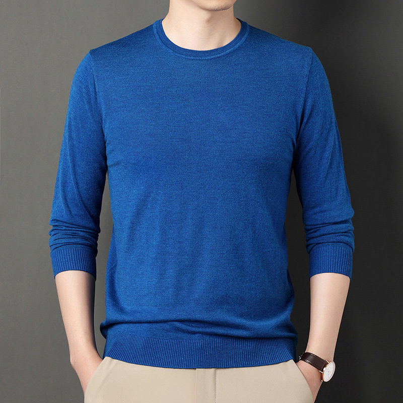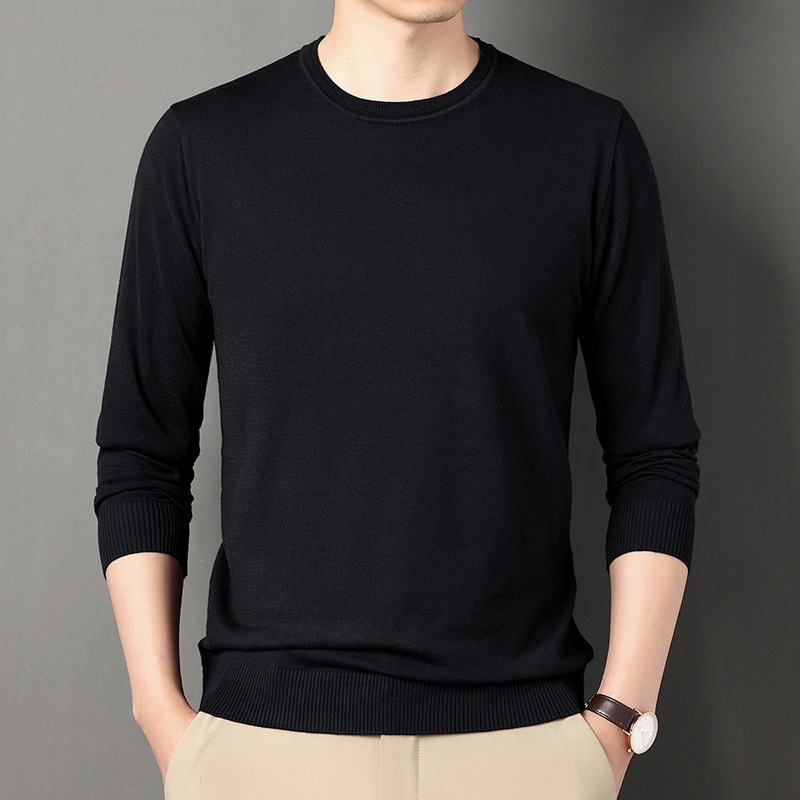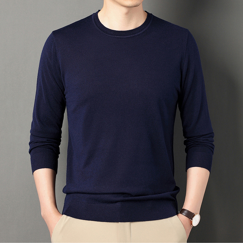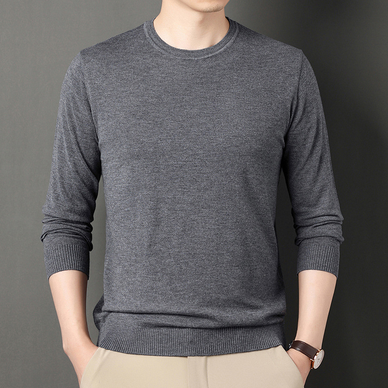 Men's knitted sweater, autumn and winter round neck thin sweater, solid color with wool pullover, long sleeved base sweater