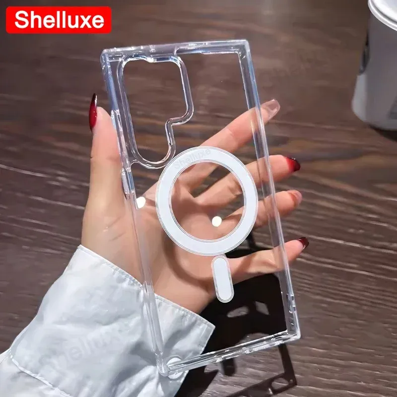 For Magsafe Magnetic Case Shelluxe For Samsung Galaxy S25 S24 S23 Ultra S22 Plus S25+ Wireless Charging Shockproof Clear Cover