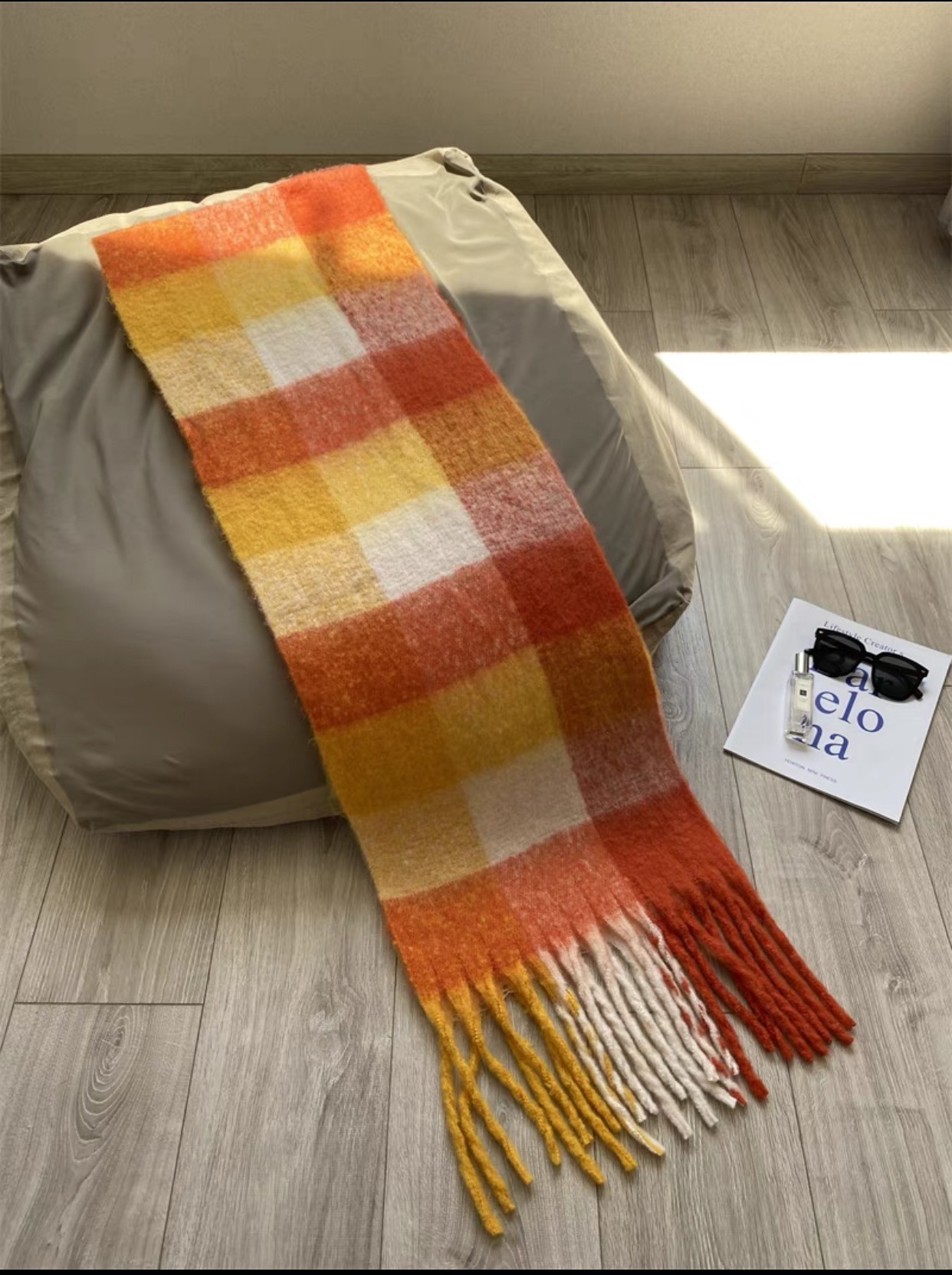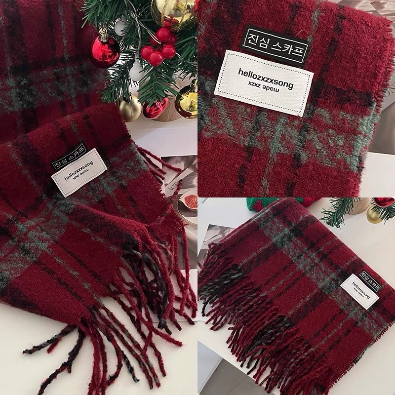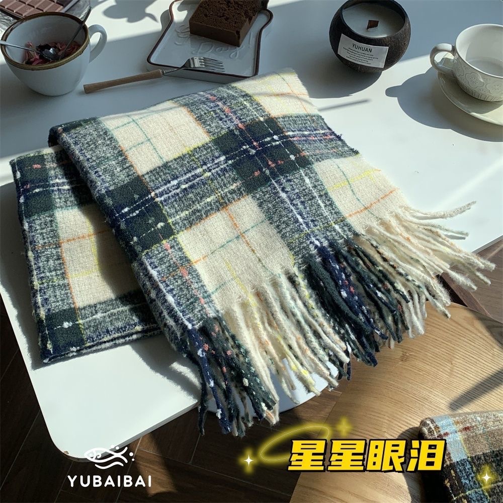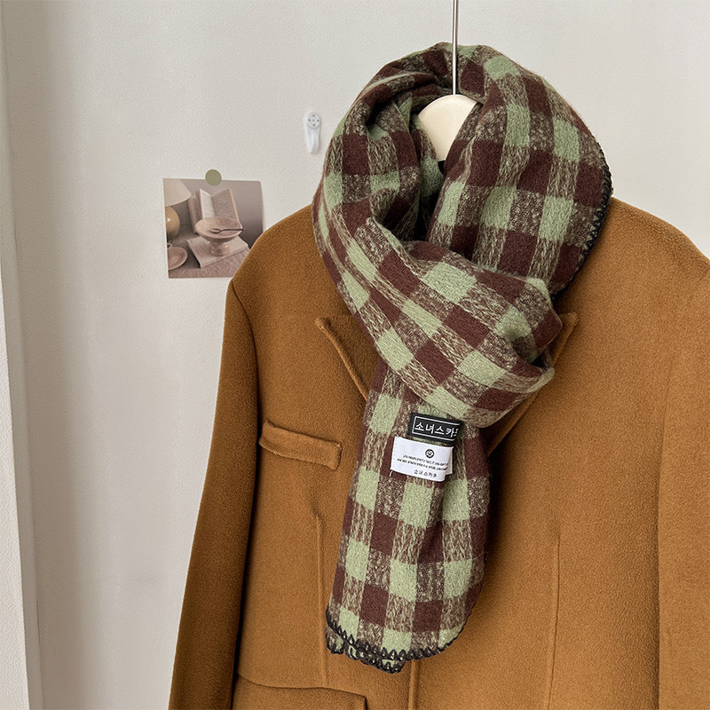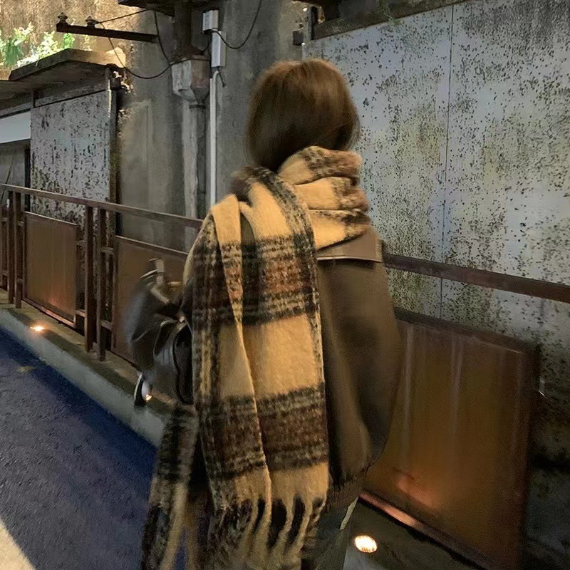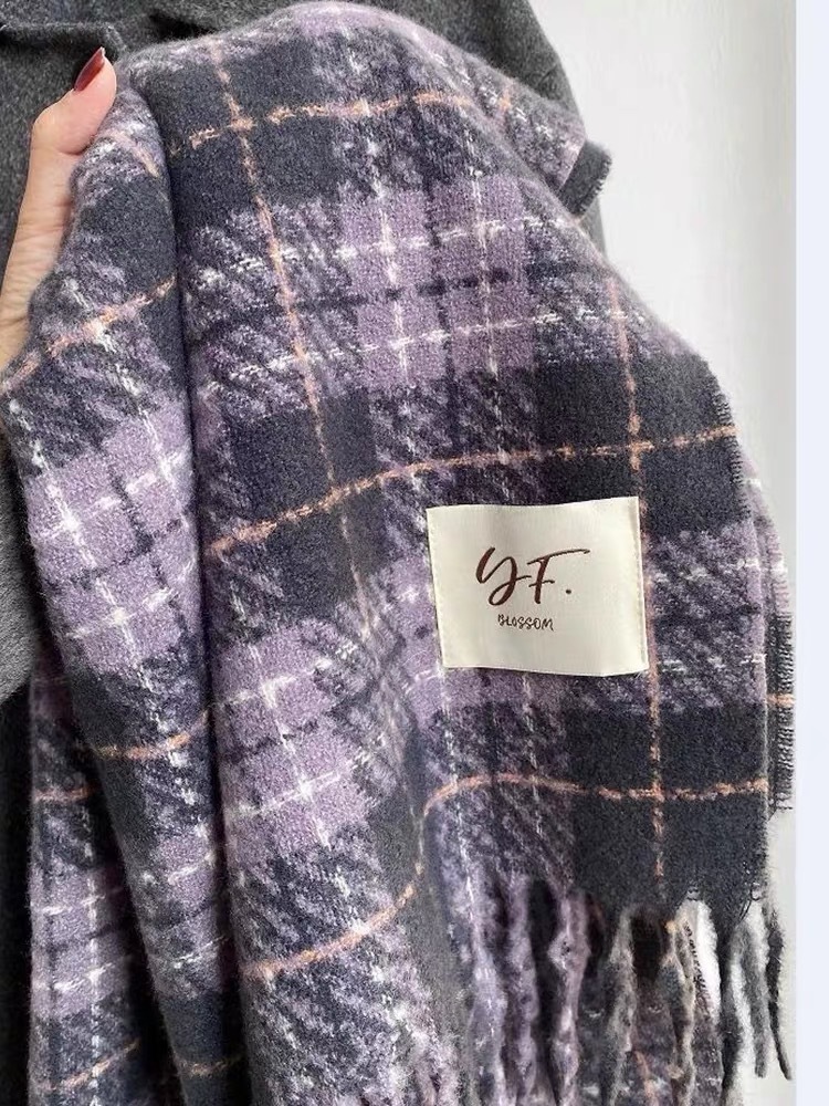 Maillard imitation cashmere plaid scarf for women, versatile in winter, Korean high-end, thickened and warm couple scarf