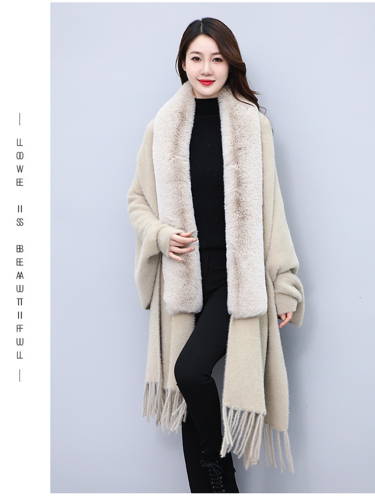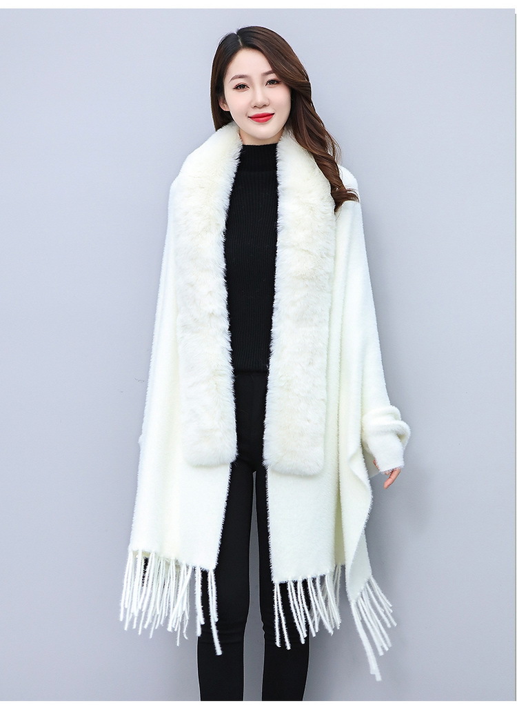 Mantella con collo di pelliccia medio lungo, grande taglia, cardigan lavorato a maglia con frange e mantello da donna_voghion.com