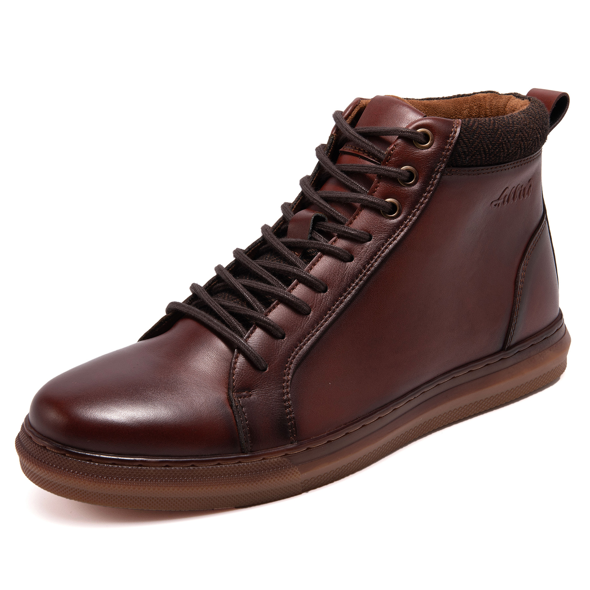 Martin Boots Men's Genuine Leather Ark Bird Autumn and Winter Plush Casual High Top Shoes Lace up Large Shoes Men's Leather Boots