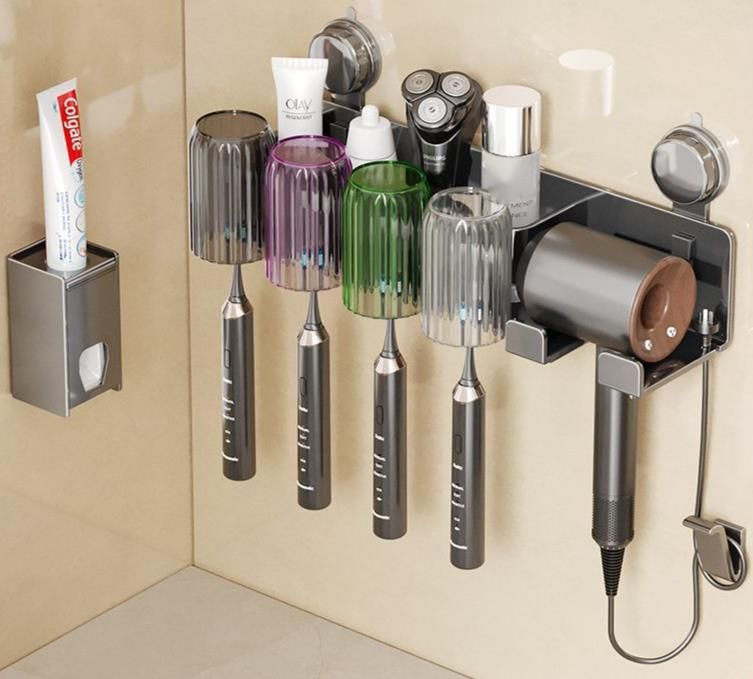 Xianmei Ruide Bathroom Suction Cup Toothbrush Hair Dryer Storage Rack Simple No-Drill Wall-Mounted Mouthwash Cup Organizer