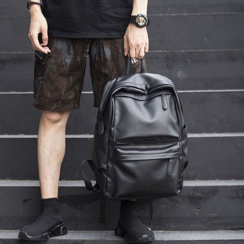Men's Casual Backpack Leather Trendy Fashion Large Capacity Travel Bag Student School Bag Laptop Bag