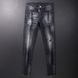 Jeans da uomo di tendenza della stazione europea, nuovi stili, aderenti, leggermente elasticizzati, semplici e generosi, alla moda, con piedini sottili.