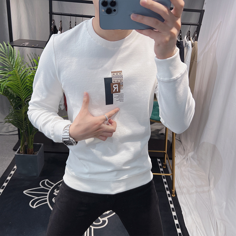 Men's hoodie trend slim fit minimalist printed pullover long sleeved spring and autumn versatile casual top slim fit fashion label
