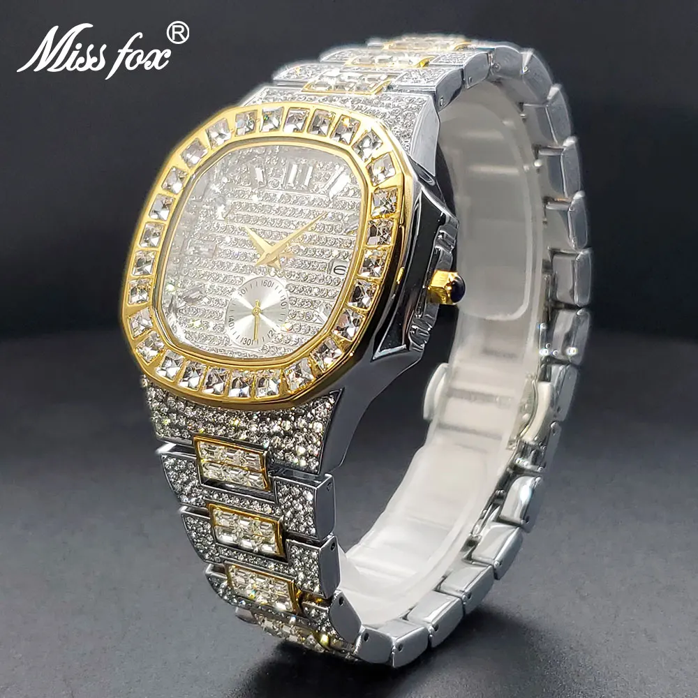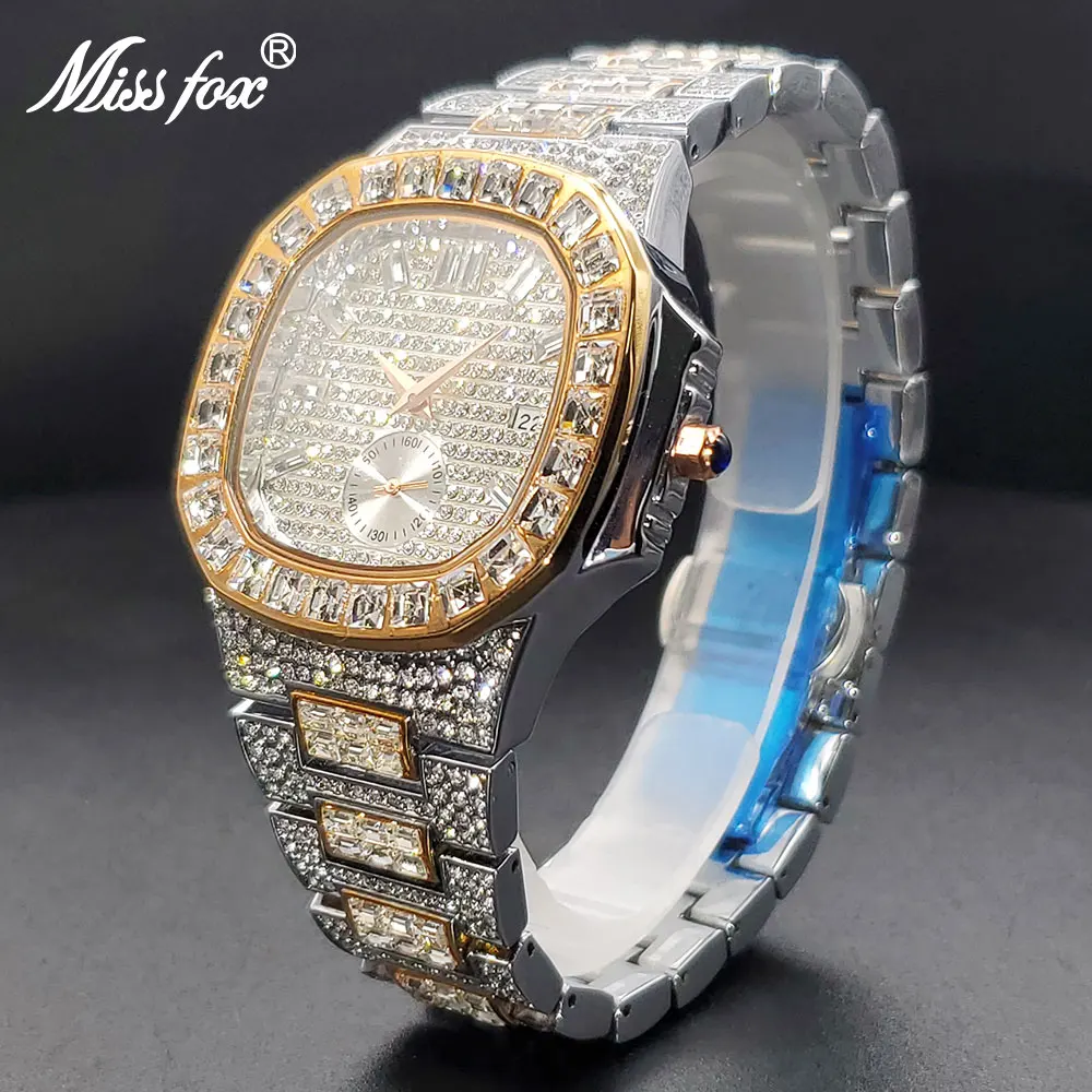 Orologio da uomo Quare di marca PLADEN quadrante quadrato in oro con calendario cinturino in diamanti orologi maschili elegante orologio hip-hop all'ingrosso