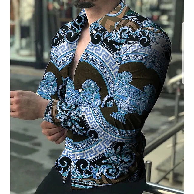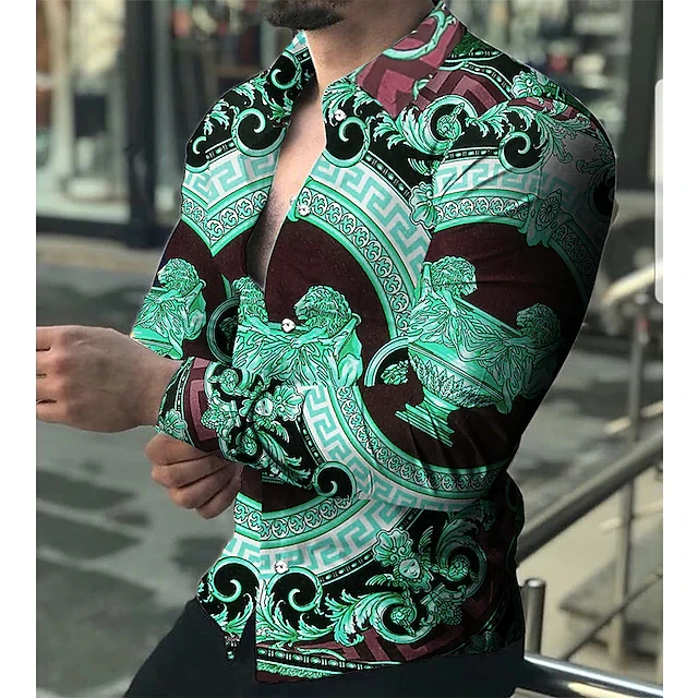 Men's Shirt Graphic Paisley Classic Collar Green Black Casual Daily Long Sleeve Clothing Apparel Designer Classic Shirt