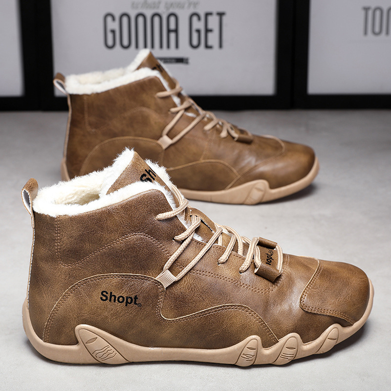 Uomo con pile invernale e scarpe alte, stivali caldi alla moda per giovani celebrità di Internet, versione coreana, Instagram