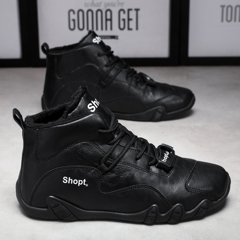Men's shoes with winter fleece and high top bean shoes, Korean version trendy internet celebrity youth warm cotton boots, Instagram motorcycle cotton shoes for men