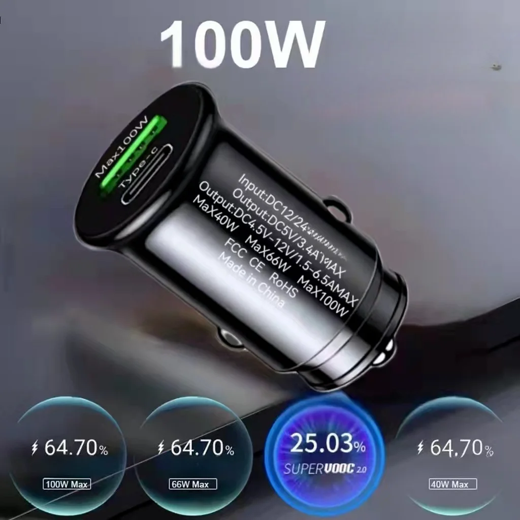 Caricabatterie per auto super veloce invisibile PD30W con anello di trazione in metallo, ricarica flash QC3.0 da 100 W