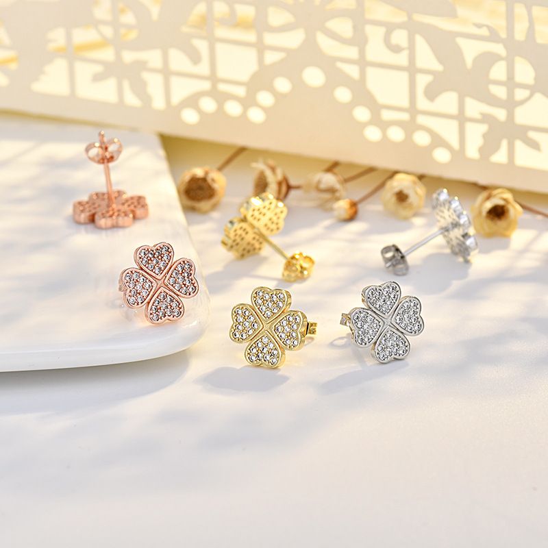 colore : Orecchini a trifoglio con diamanti pieni (oro giallo) placcati con oro autentico per