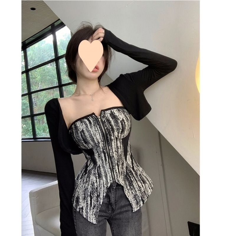 Mini abito chic di alta gamma in stile americano, dolce e piccante, nero, unico, con top senza spalline e set scialle per donna