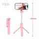 Brand:Neutral,Item Number:F310/F310S,Material:Stainless steel+ABS,Does it include a remote control?:yes,Color:110CM black without light, 110CM pink without light, 110CM white without light, 110CM black with light, 110CM pink with light, 110CM white with light,Main sales regions:Europe, South America, Southeast Asia, North America, Northeast Asia, domestic e-commerce, others,We have authorized private labels available:No,Customizable:Support,Is it a patented source product?:No,Style:Universal,Does it support body stabilization?:No,Whether with a fill light:yes,03:Mobile Phone Selfie Stick Portable Selfie Stick,Does it support Bluetooth?:yes,01:Phone Selfie Stick Tripod with Bluetooth for Travel,02:Extendable Phone Selfie Stick
