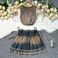 Minigonna stile hot girl da donna design monopezzo lavato a pieghe sbavate a mezza lunghezza
