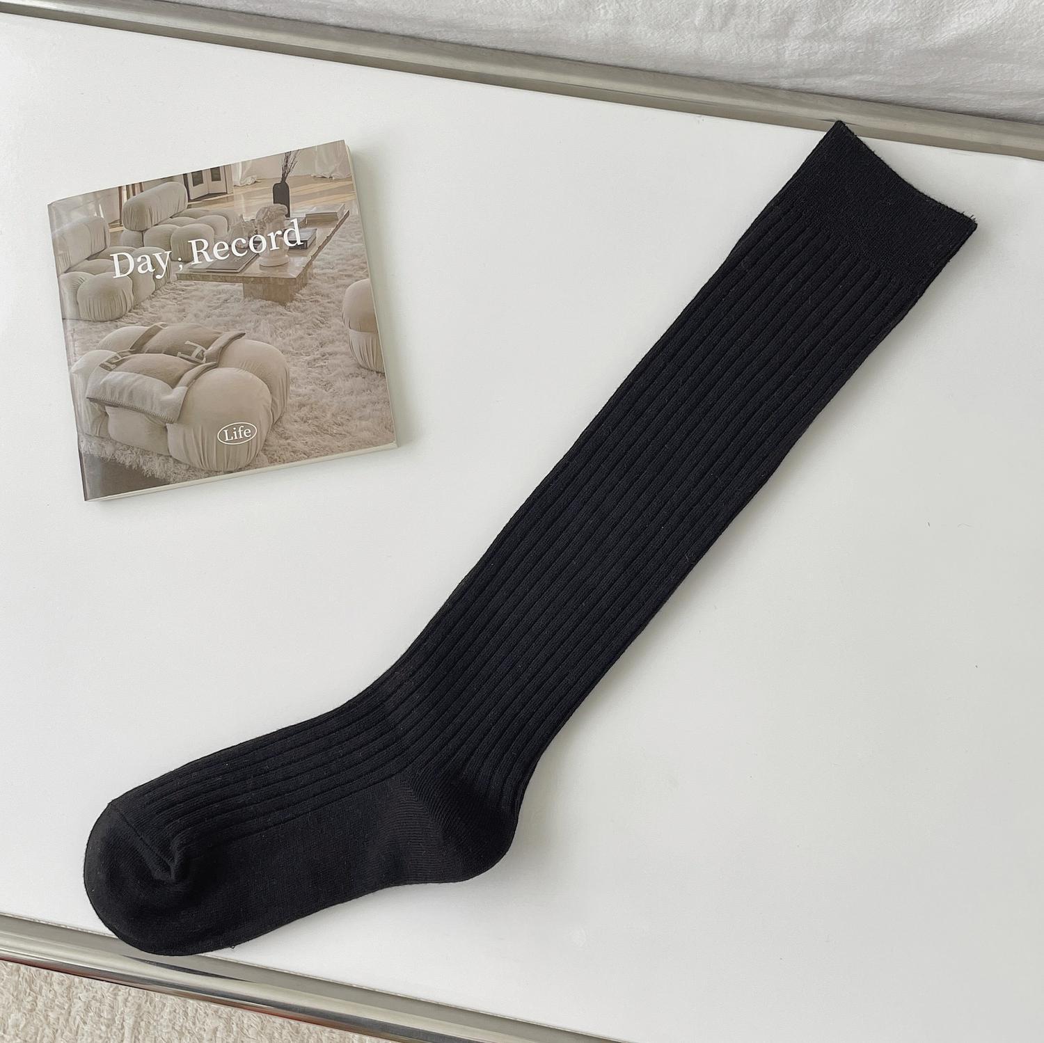 Miu style fashion show gray calf socks for children, Ins trendy Korean seasonal styles, vertical stripe pattern color, mid tube pile socks