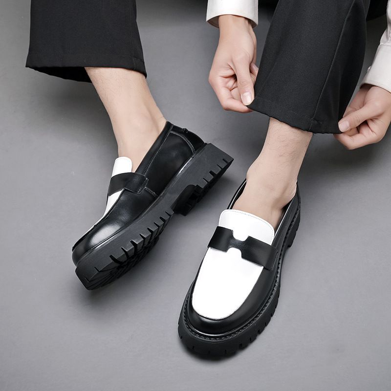 Large Size Men's Slip-On Leather Shoes Thick Sole Formal Business Casual Loafers Workplace Versatile Men's Shoes