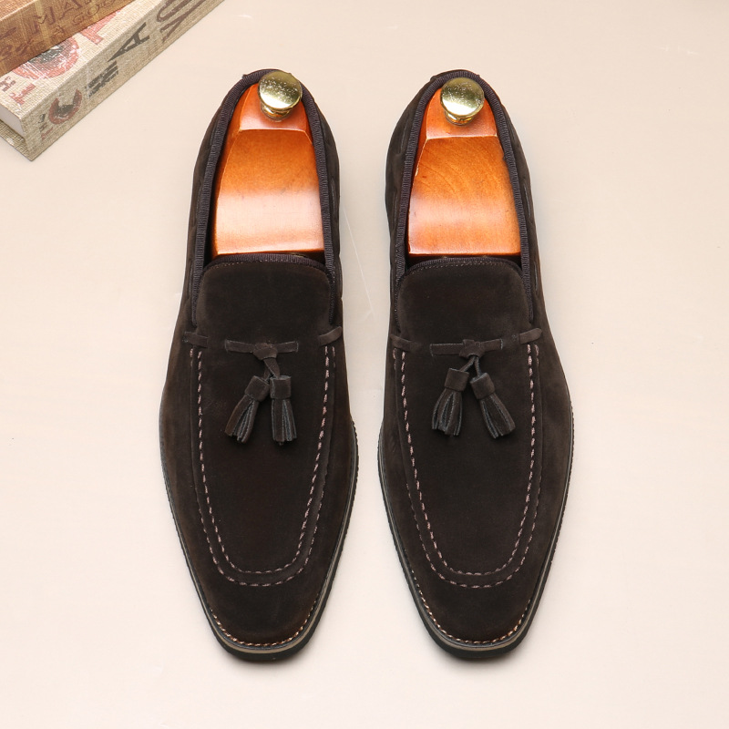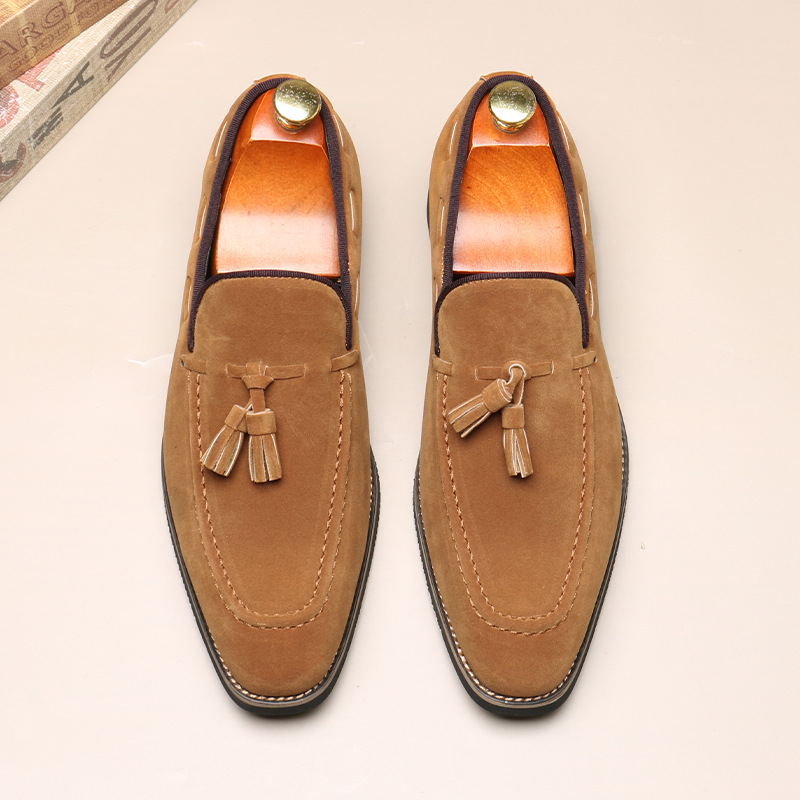 Mocassini con nappine da uomo, a punta, con piedini, casual, slip-on