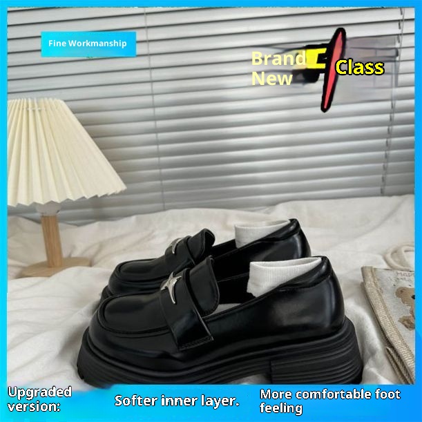 Mocassini ShoeVault con suola spessa da donna, neri, formali, con punta arrotondata, versatili, con tacco medio, antiscivolo, snellenti, per studenti