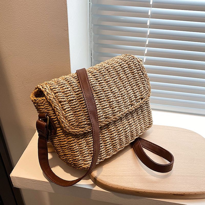 Moda Rattan Donne Borse a Tracolla Piccole Borse Firmate Signora Vimini Intrecciato Borsa a Tracolla Estate Spiaggia Paglia Messenger