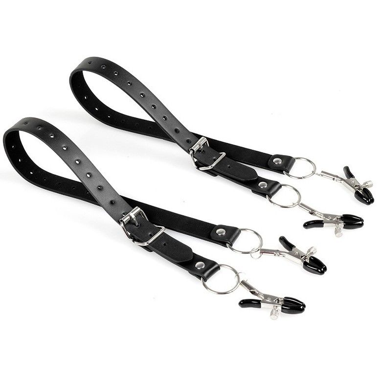 Morsetti per capezzoli divertenti in pelle nera per flirtare con donne adulte, giocattoli sessuali unisex di alta qualità SM