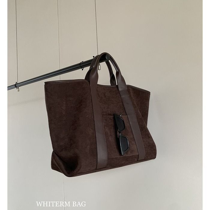 Mourou Chen versione coreana 2024 nuova borsa da donna in pelle scamosciata, semplice e alla moda, grande borsa