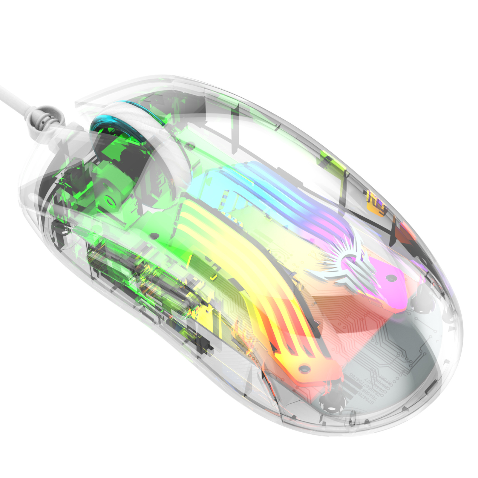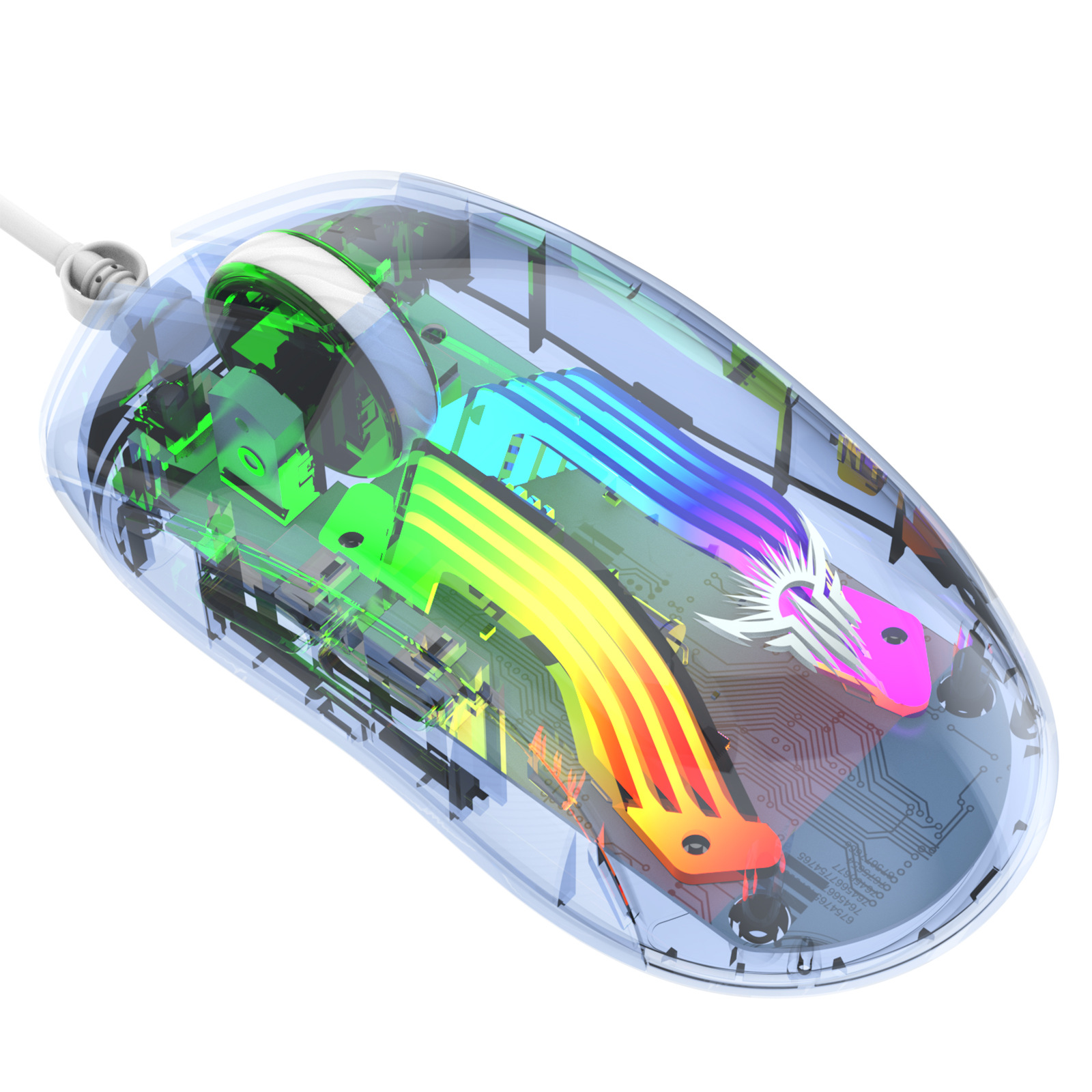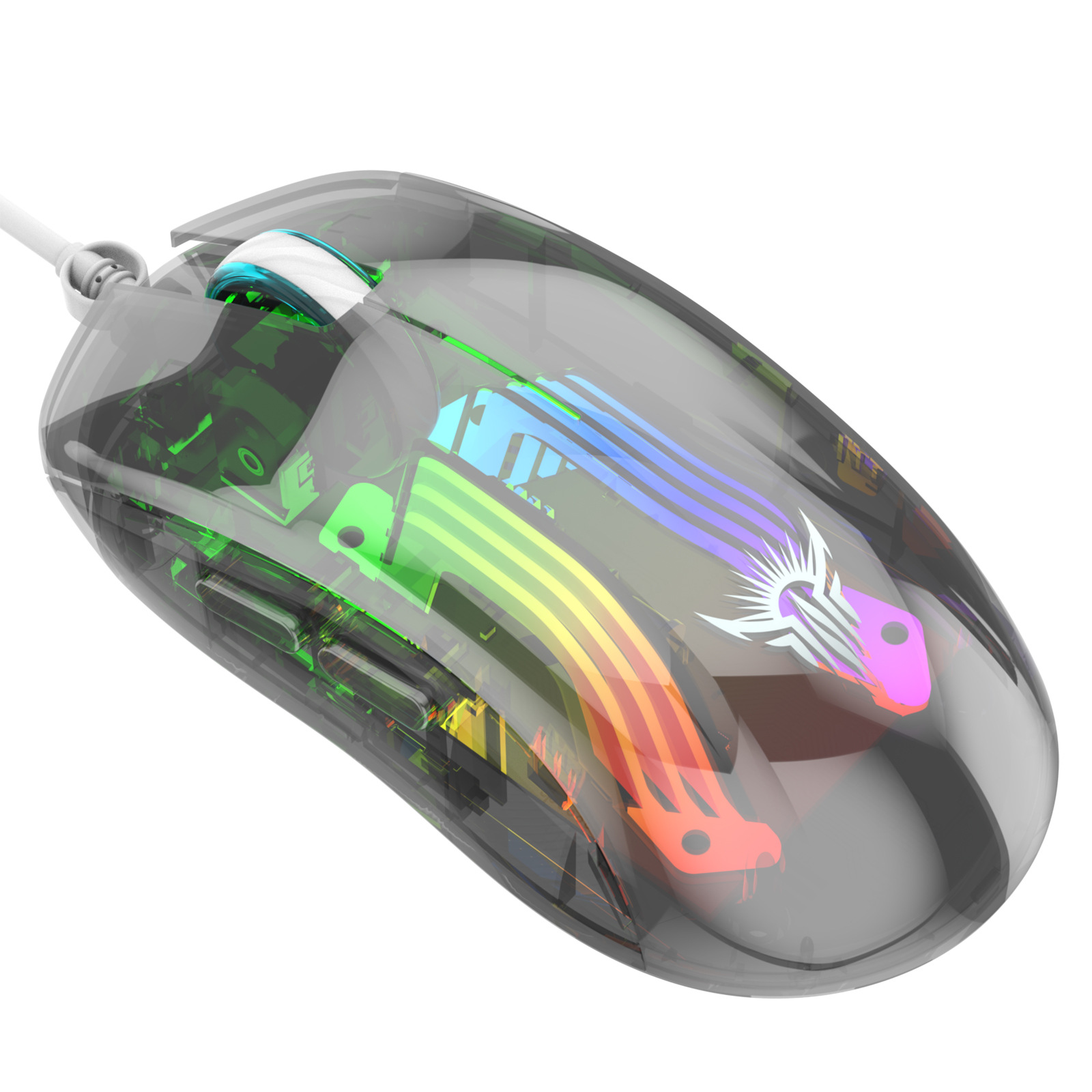 Mouse da gioco leggero e cablato trasparente, luminosità RGB, computer, sensazione da ufficio, buon prodotto neutro più venduto