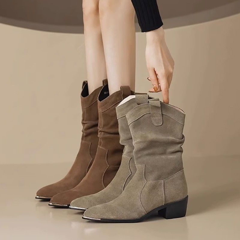 Mules corte da donna, slip-on, a metà polpaccio, autunno 2025, nuovi stivali da cowboy western con punta affilata e taglio a V