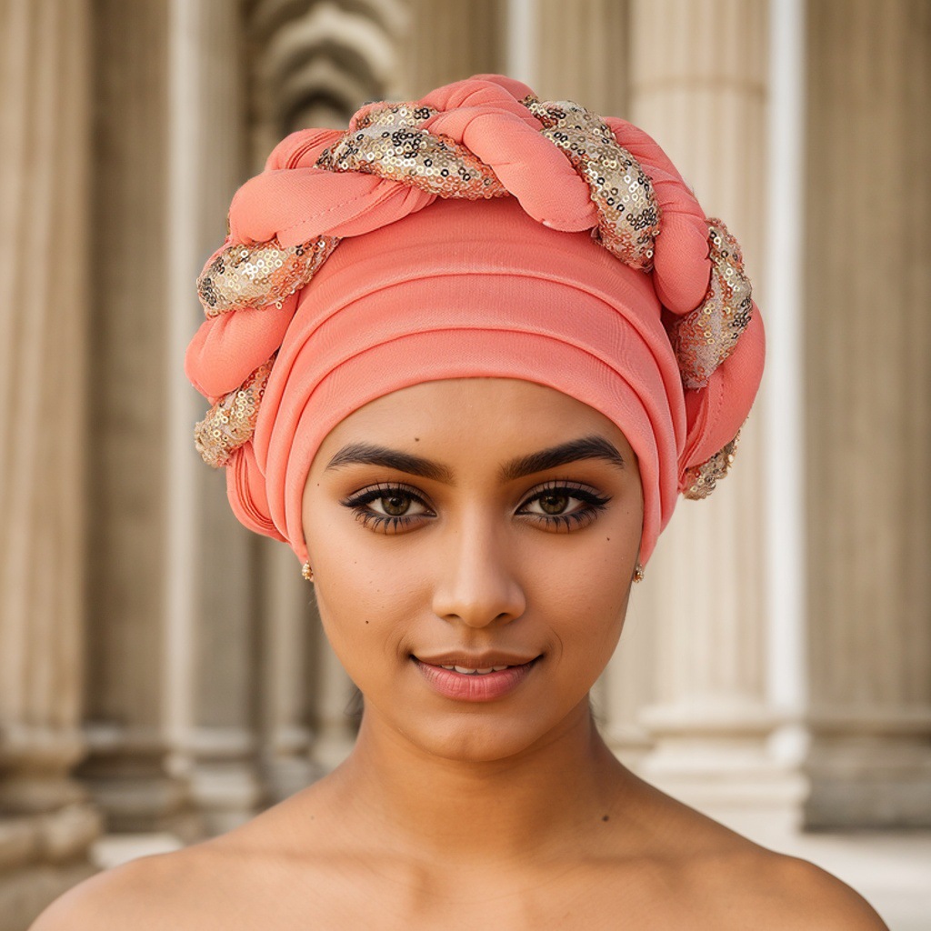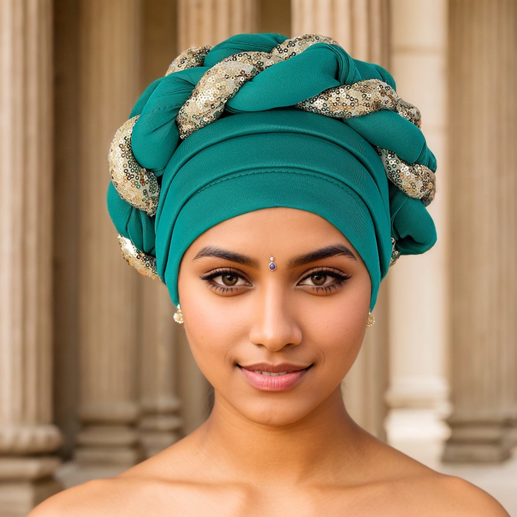 Cappello musulmano Cappello con treccia di paillettes a strati spazio Cappello africano alla moda