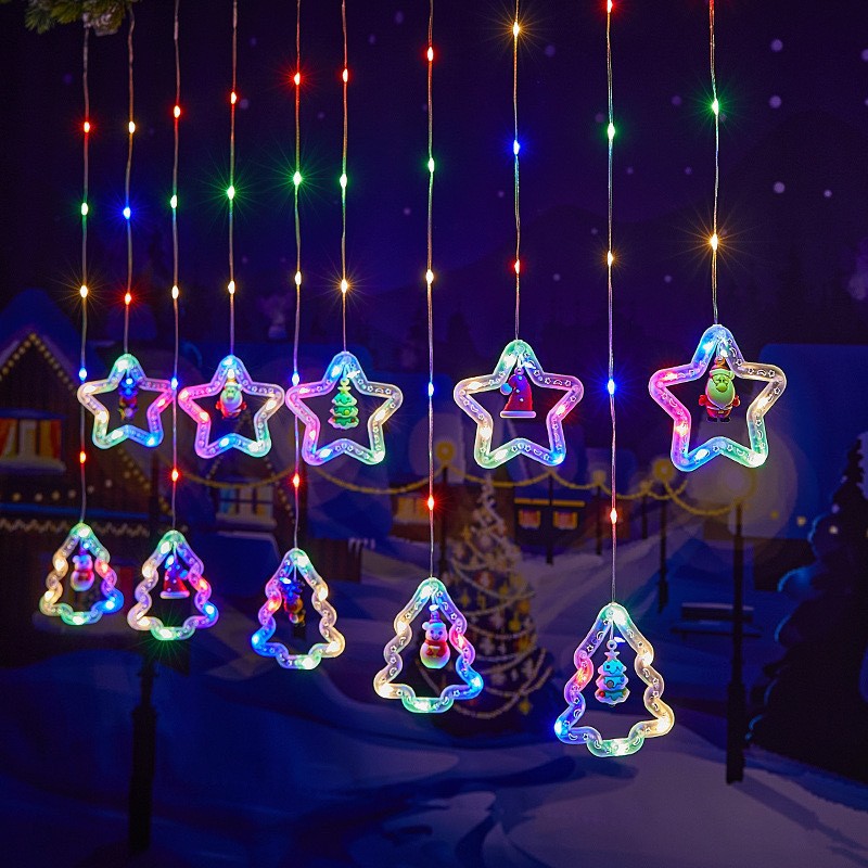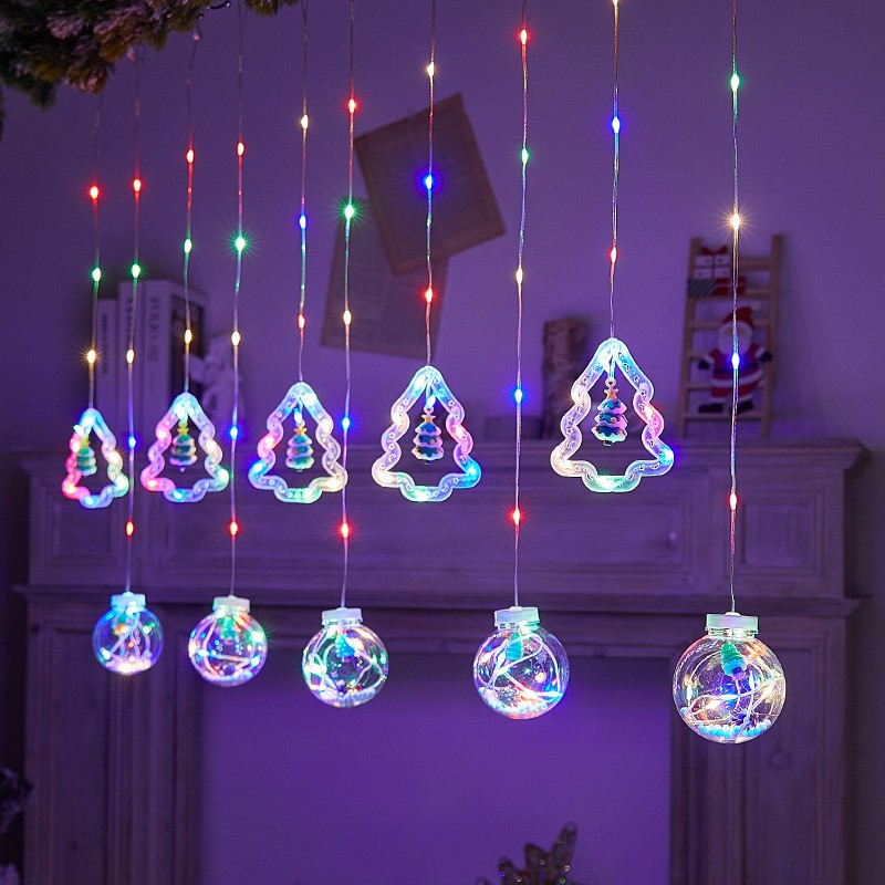Nuova tenda di Natale con luci a forma di stringa, Babbo Natale, albero di Natale, decorazione per finestre della stanza a LED lampeggiante, appesa