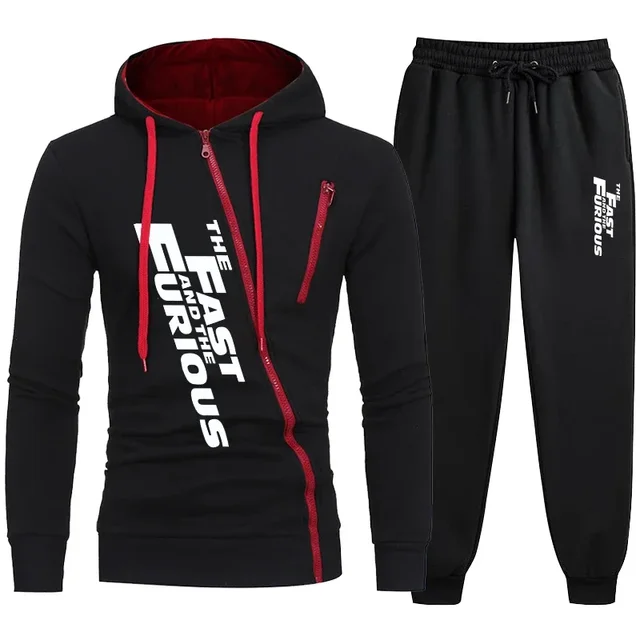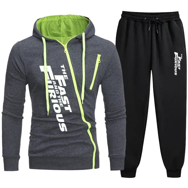 Nuovo marchio di moda stampato da uomo Tracuit con cerniera e cappuccio due pezzi set tute da jogging abbigliamento sportivo felpa pantaloni della tuta