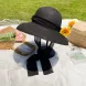Elegant Long Black Ribbon Straw Hats For Women Foldable Wide Brim Panama Beach Hat Female Fashion Holiday Photo Props Sun Caps