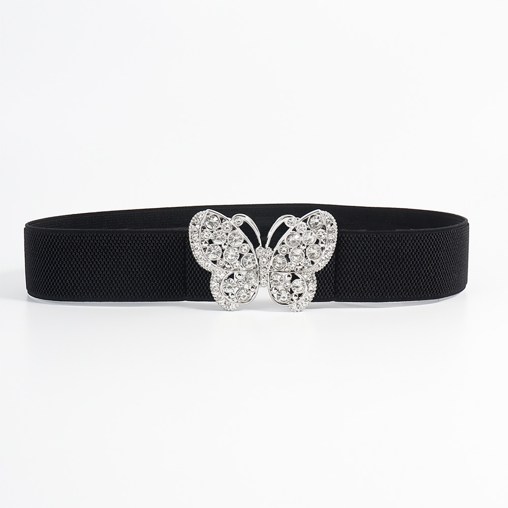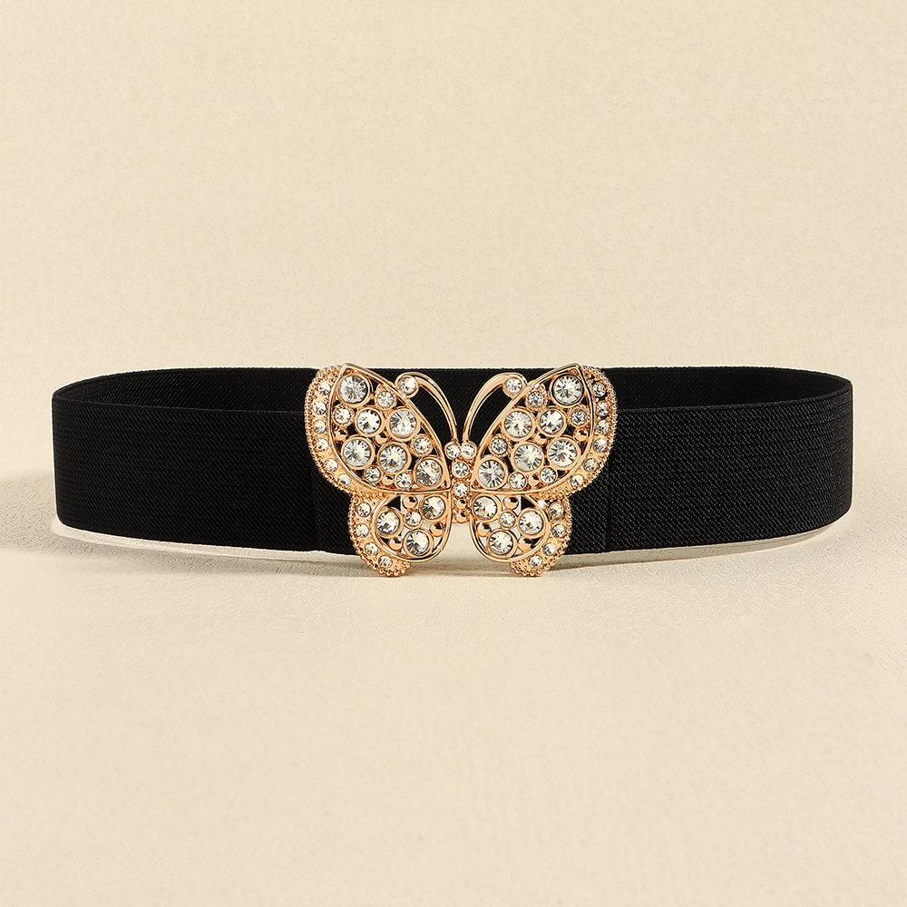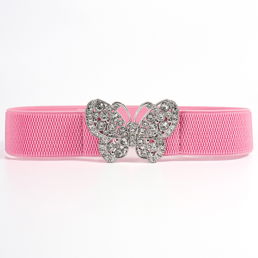 Nuova cintura elastica da donna con strass fiocco rosa versatile abito decorativo estivo brillante cinturino coreano