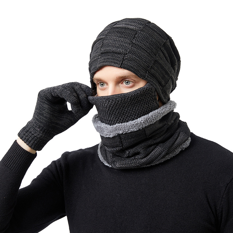 Nuovo stile europeo e americano per coppie autunnali e invernali con cappello caldo di peluche, sciarpa, maschera, guanti, set da quattro pezzi, transfrontaliero
