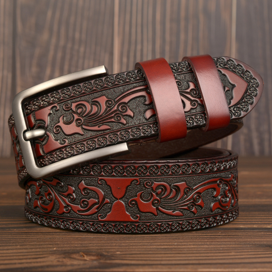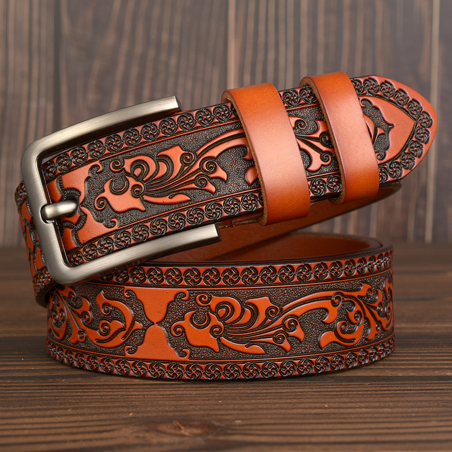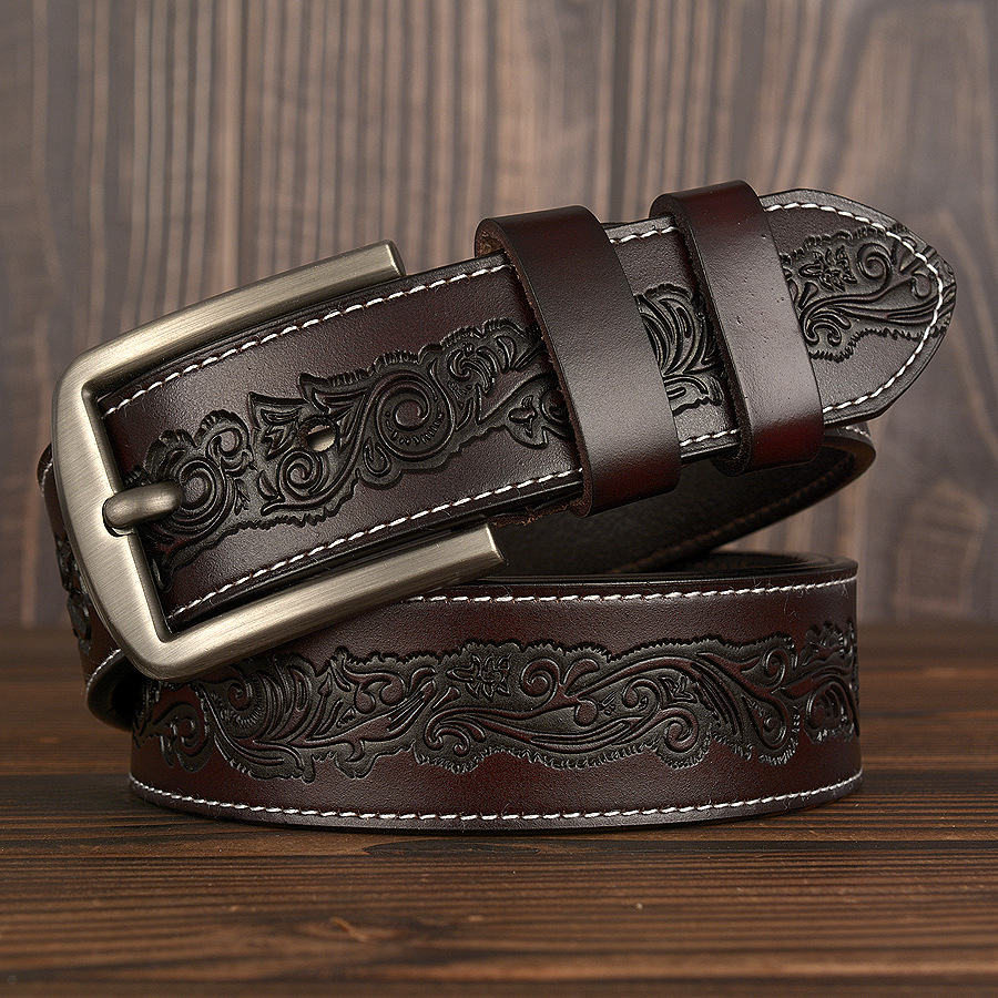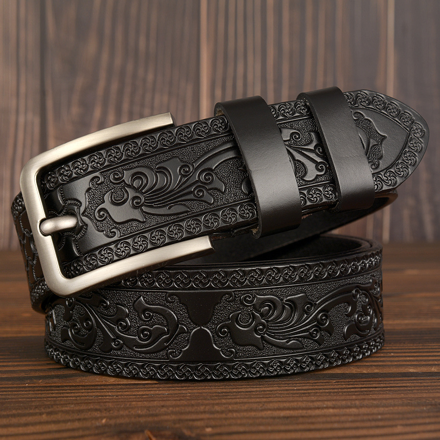 Cintura da uomo in pelle di vacchetta intagliata personalizzata con fibbia ad ago di nuova moda