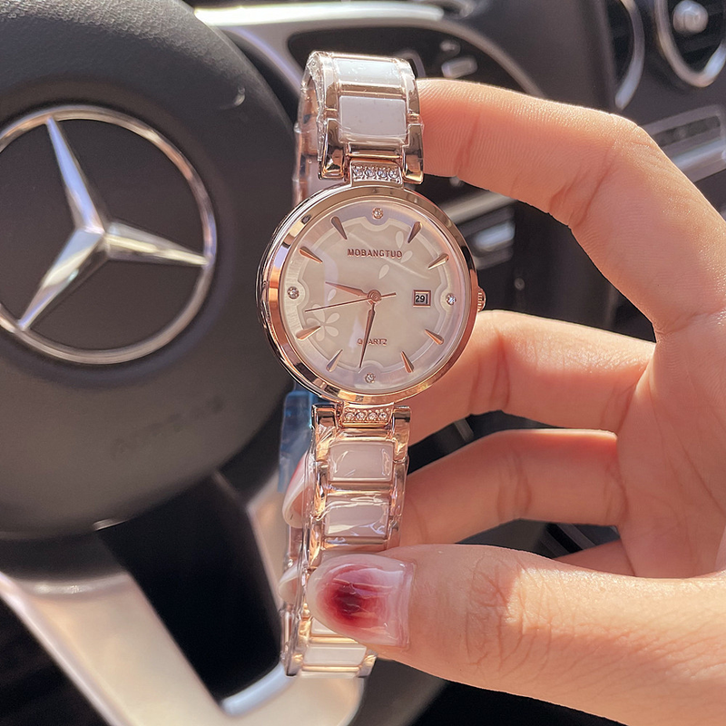 Orologio da donna con calendario e cintura impermeabile al quarzo minimalista in ceramica di nuova moda