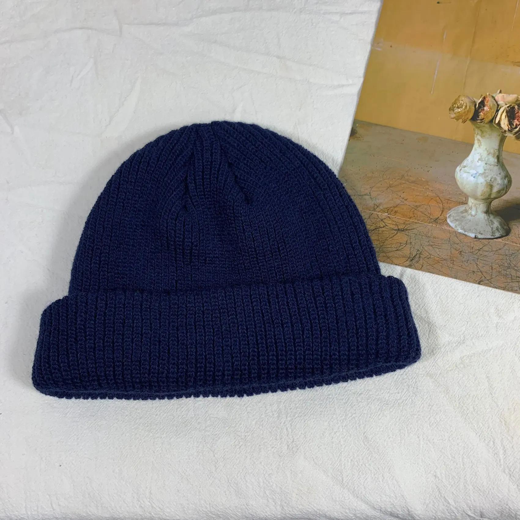Berretto da uomo di nuova moda invernale lavorato a maglia cappello da ragazzo zucchetto berretto da marinaio polsini retrò cappello corto blu scuro tinta unita unisex autunno