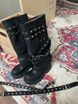 Nuovo modello, stivali lunghi da donna vintage con punta tonda, stilisti di nicchia, con borchie, stivali da cavaliere.