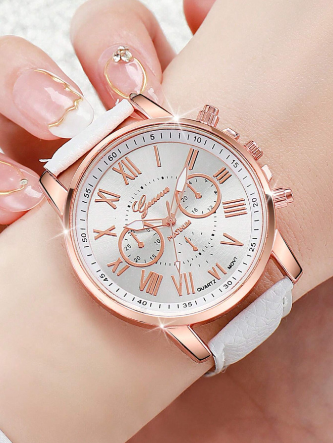 Nuovo orologio con cinturino in pelle PU Orologio al quarzo Three Eyes Geneva Orologio alla moda per coppie Orologio classificato