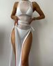 New solid color bikini top, beach skirt, three piece swimsuit, women's high-end hot spring swimsuit